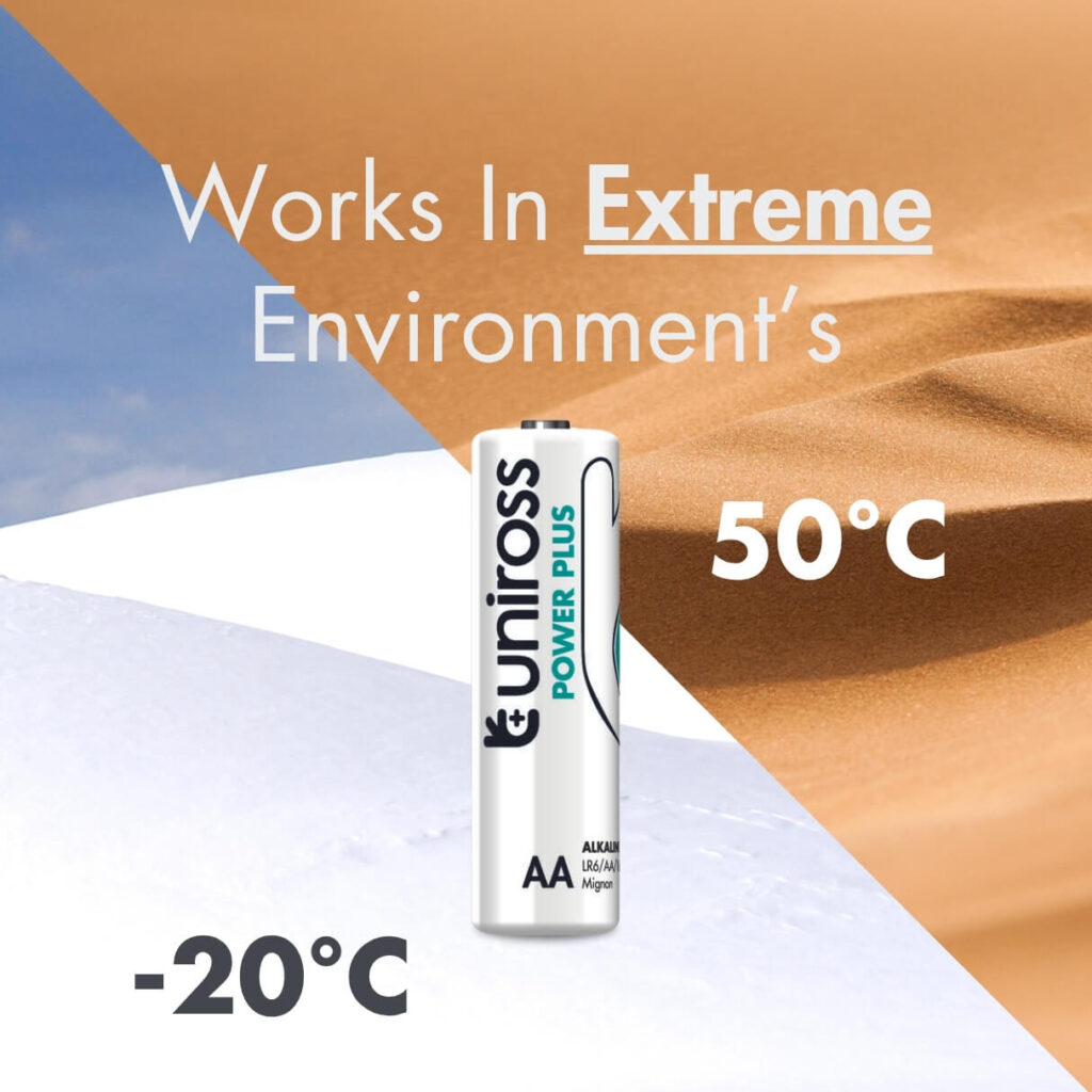 40 baterii alcaline AA (R6) marca UNIROSS POWER PLUS ambalate intr-o cutie de carton